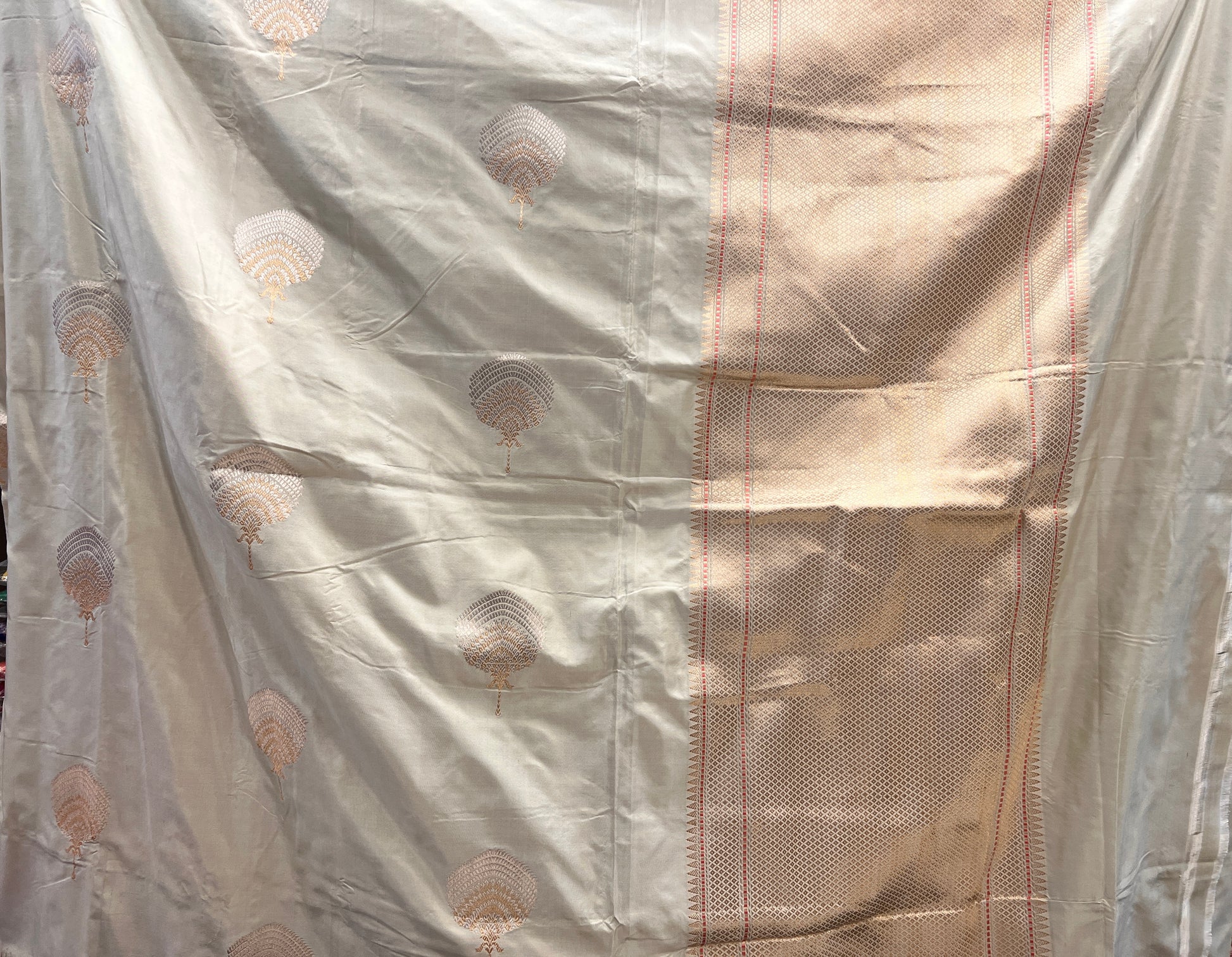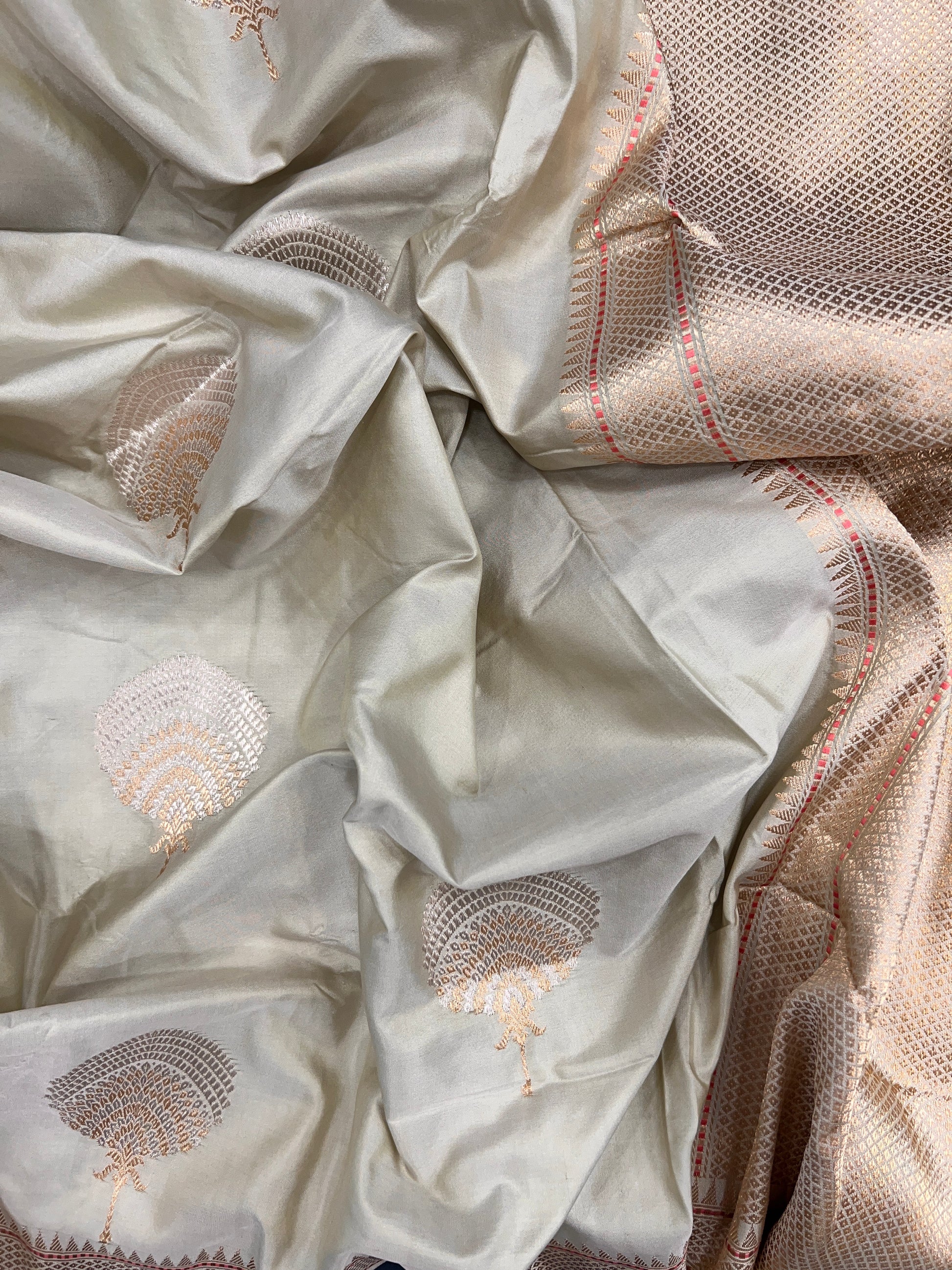 Pista Green Gold & Silver Jamdani Mughal Boota Saree